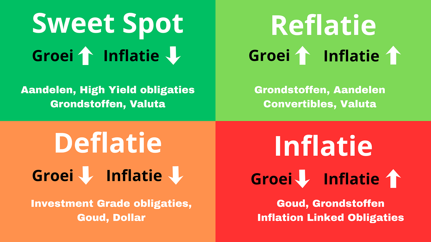 Reflatie: economische groei en stijgende inflatie (risk-on).